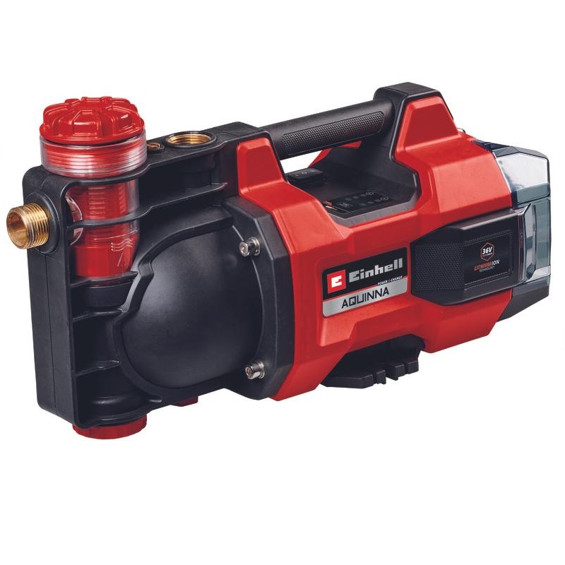 Aku čerpadlo zahradní Aquinna 36/38 F LED Einhell je napájeno dvěma 18V akumulátory Power X-Change. Zahradní čerpadlo je vybaveno dvěma režimy výkonu: Režim BOOST pro maximální čerpací výkon a režim ECO pro maximální dobu provozu na baterie při nižším čerpacím tlaku. Akumulátorové čerpadlo dokáže přečerpat až 3 800 litrů vody za hodinu. Může dosáhnout maximální výtlačné výšky 37 metrů, což odpovídá maximálnímu výtlačnému tlaku 3,7 baru.