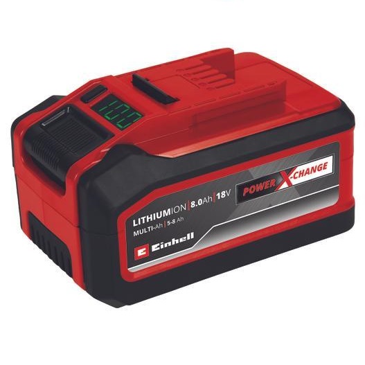 Akumulátor 5-8 Ah Power X-Change Einhell 18 V je špičková baterie rodiny Power X-Change Plus. Díky technologii Multi-Ah jej lze provozovat jako 8,0Ah baterii pro maximální výdrž a jako 5,0Ah baterii pro 3x delší celkovou životnost. Nejnovější generace lithium-iontových článků vytváří o 100% více energie pro maximální výkon při všech aplikacích.