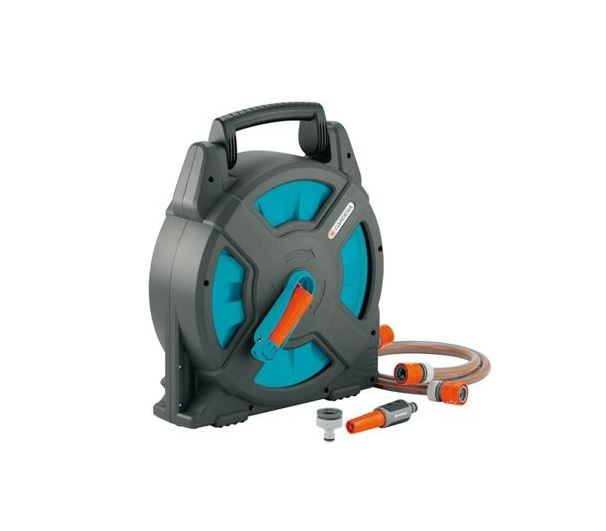 Box na hadici 15 obsahuje hadici, všechny nutné připojovací díly systému GARDENA a nastavitelnou postřikovač. Vždy připravený k použití.