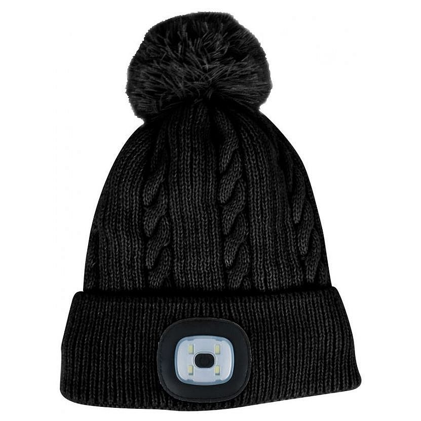Čepice LED s bambulí Damon, 4xSMD LED, USB nabíjení, 60lm, černá, L.