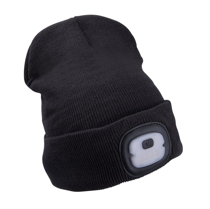 Čepice s čelovkou 4x25lm, USB nabíjení, tmavě šedá, ECONOMY, univerzální velikost
