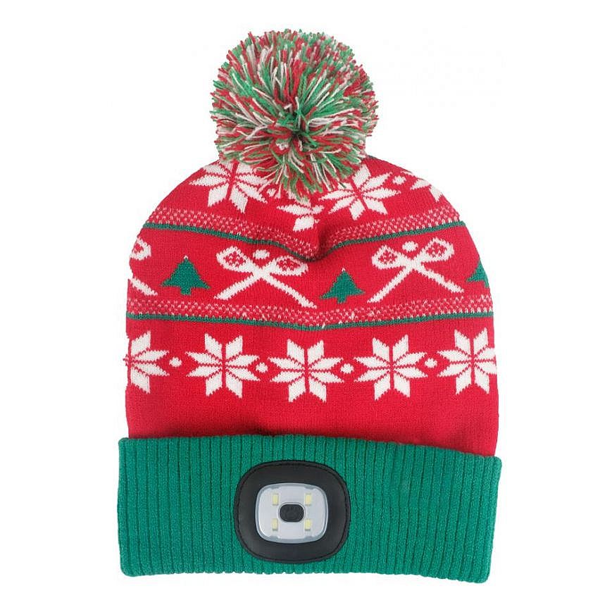 Čepice s čelovkou zeleno-červená vánoční vel. L