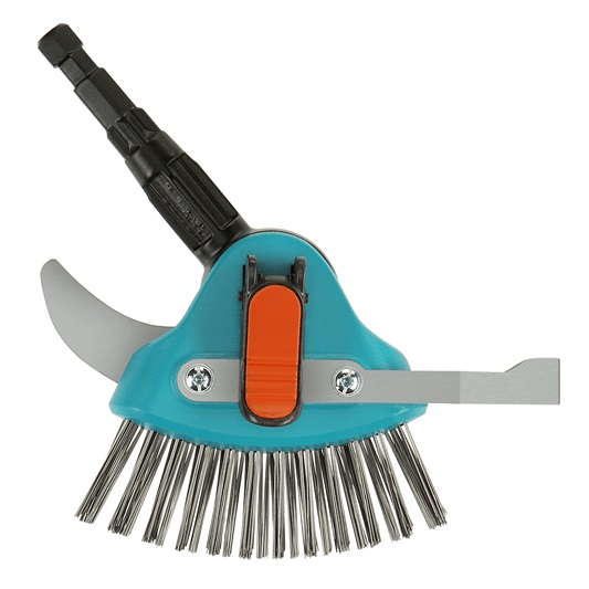 Čistič teras je součástí řady Combisystem Gardena, kdy můžete jednoduše využívat více druhů nářadí s jednou násadou. Snadno vyměníte nářadí na násadě, a doma Vám nezavazí spoustu nářadí, které je náročné na uskladnění.