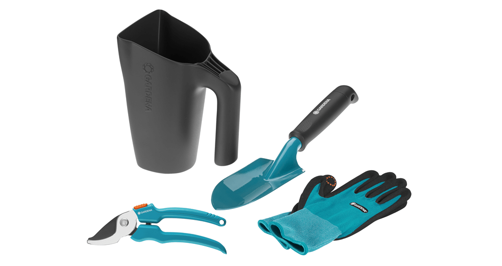 Tato praktická sada představuje perfektní start do světa GARDENA drobného nářadí. Obsahuje multifunkční konev s mnoha možnostmi použití, například pro nahrnování půdy nebo pro zavlažování. Tato sada dále zahrnuje květinovou lopatku, zahradní nůžky a pár rukavic pro sázení a práci s půdou.