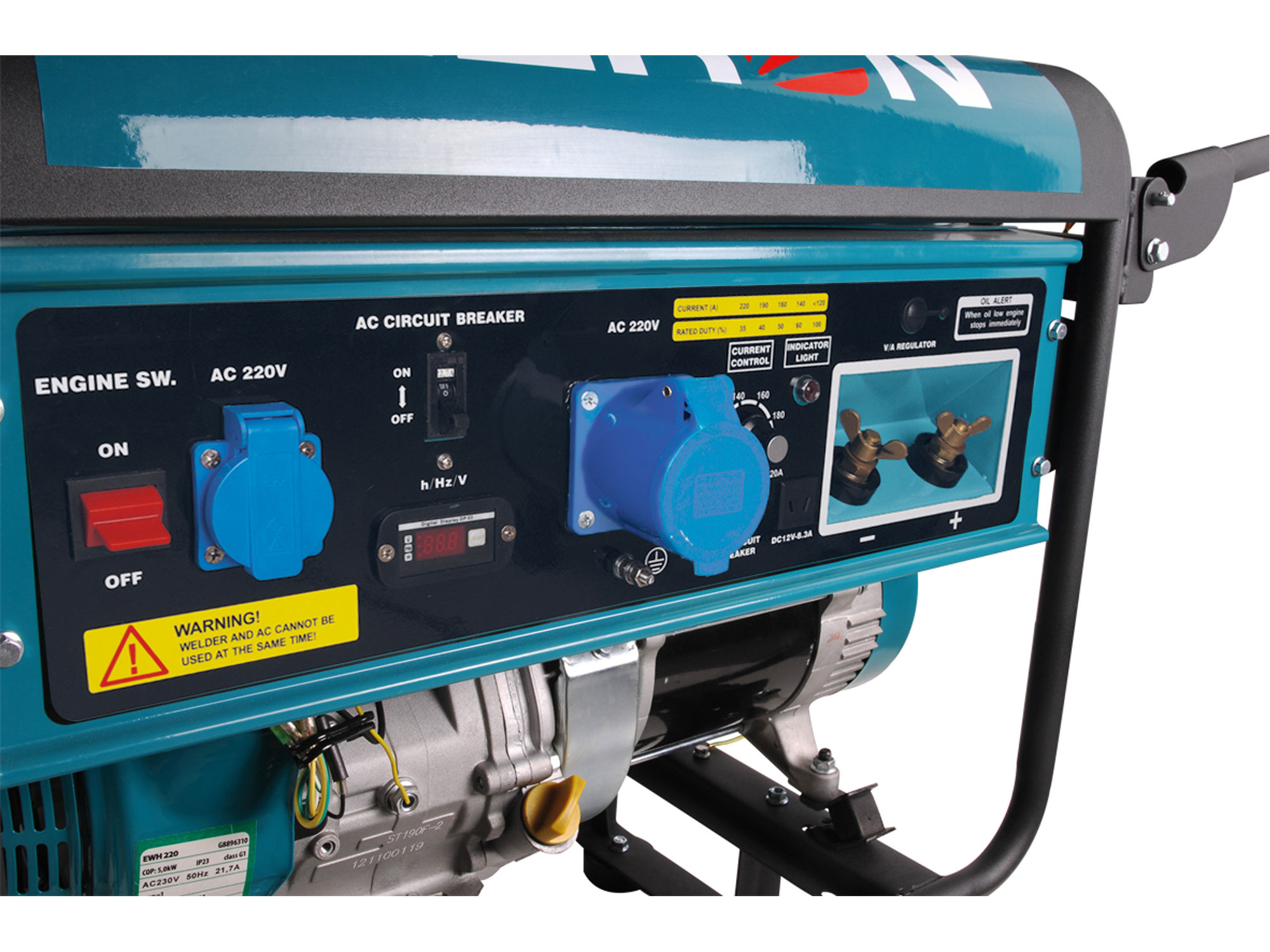 Tato kvalitní víceúčelová elektrocentrála se svářečkou je určena hlavně pro použití ve stavebnictví a pro montážní práce. Lze ji použít pro napájení nářadí a ostatních spotřebičů do výkonu 5,5kW nebo jako silný 220A svářecí agregát pro náročnou práci. Je vybavena madly a kolečky pro snadnou manipulaci.