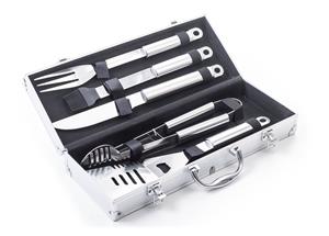 Sada obsahuje kompletní nástroje pro grilování bez potíží. Součástí sady je obracečka, vidlička, kleště, prodloužený grilovací nůž a štětec na potírání. Délka nářadí 40 cm zajišťuje, že na vás při grilování nebudou šlehat plameny ani prskat olej z masa. Pro snadné přenášení a skladování je nářadí uloženo do praktického hliníkového kufru.