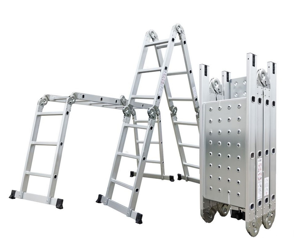 Hliníkové štafle můžete využít jednak jako dlouhý žebřík v délce až 3,7 m. Další variantou je možnost sestavit štafle jako přenosné lešení.