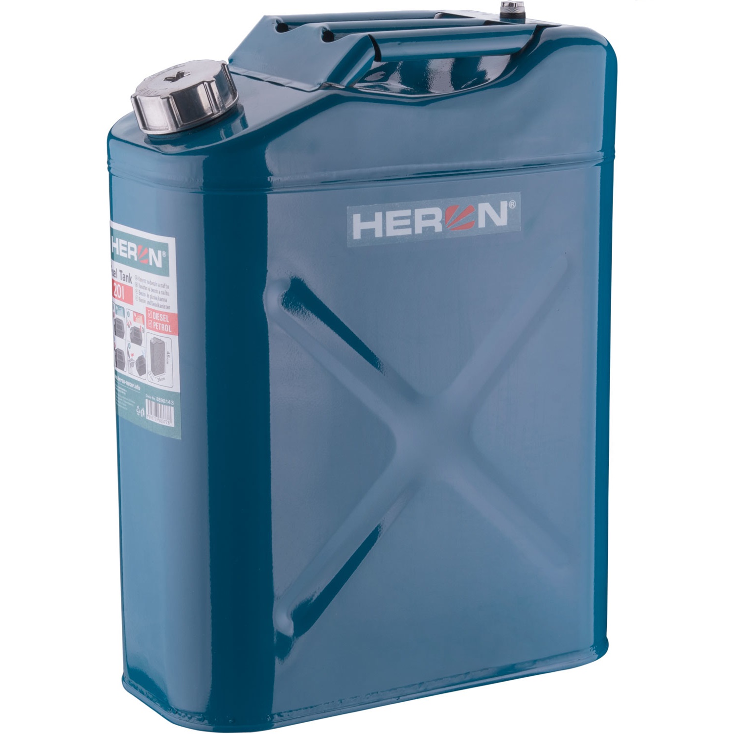 Kanystr ocelový na benzín, 20l Heron 8898143