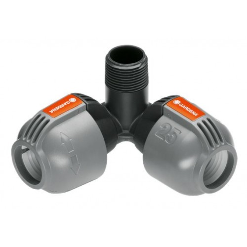 L-kus 25 mm x vnější závit 3/4", rohová přípojka zadešťovače Gardena 2783-20