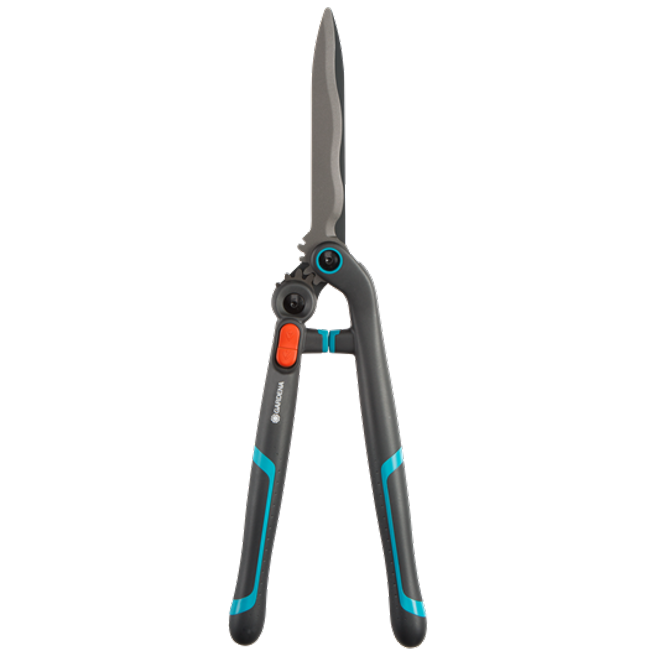 GARDENA nůžky na živý plot EnergyCut přesvědčí svou jedinečnou funkcí 2 v 1, díky níž nabízí nejlepší kombinaci rychlé a výkonné práce s vysokou účinností. Při stříhání živých plotů, keřů nebo křovin se může stát, že se do nůžek dostane velká větev: v těchto případech stačí stisknout tlačítko a aktivovat dodatečnou sílu! Zvýšením úhlu otevření vytvoříte dodatečnou sílu větší pákou.