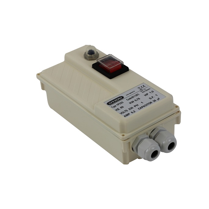 Ovládací kondenzátorová skříňka pro rozběh jednofázového ponorného motoru o jmenovitém výkonu 0,75 kW