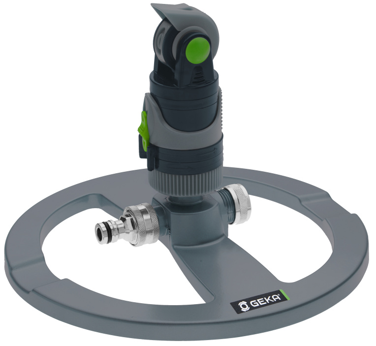 Kruhový, sektorový, multifunkční postřikovač se čtyřmi druhy trysek pro různé typy závlahy s nastavitelnou vzdáleností dostřiku. Lze zavlažovat jak kruhové plochy, tak i různé kruhové výseče, s možností sériového zapojení několika postřikovačů za sebou. Postřikovač má masivní kovový stojan, který zaručuje jeho stabilitu. Je vybaven kvalitní pochromovanou mosaznou spojkou, která je kompatibilní se všemi standardními rychlospojkovými systémy (jak kovovými, tak plastovými).
