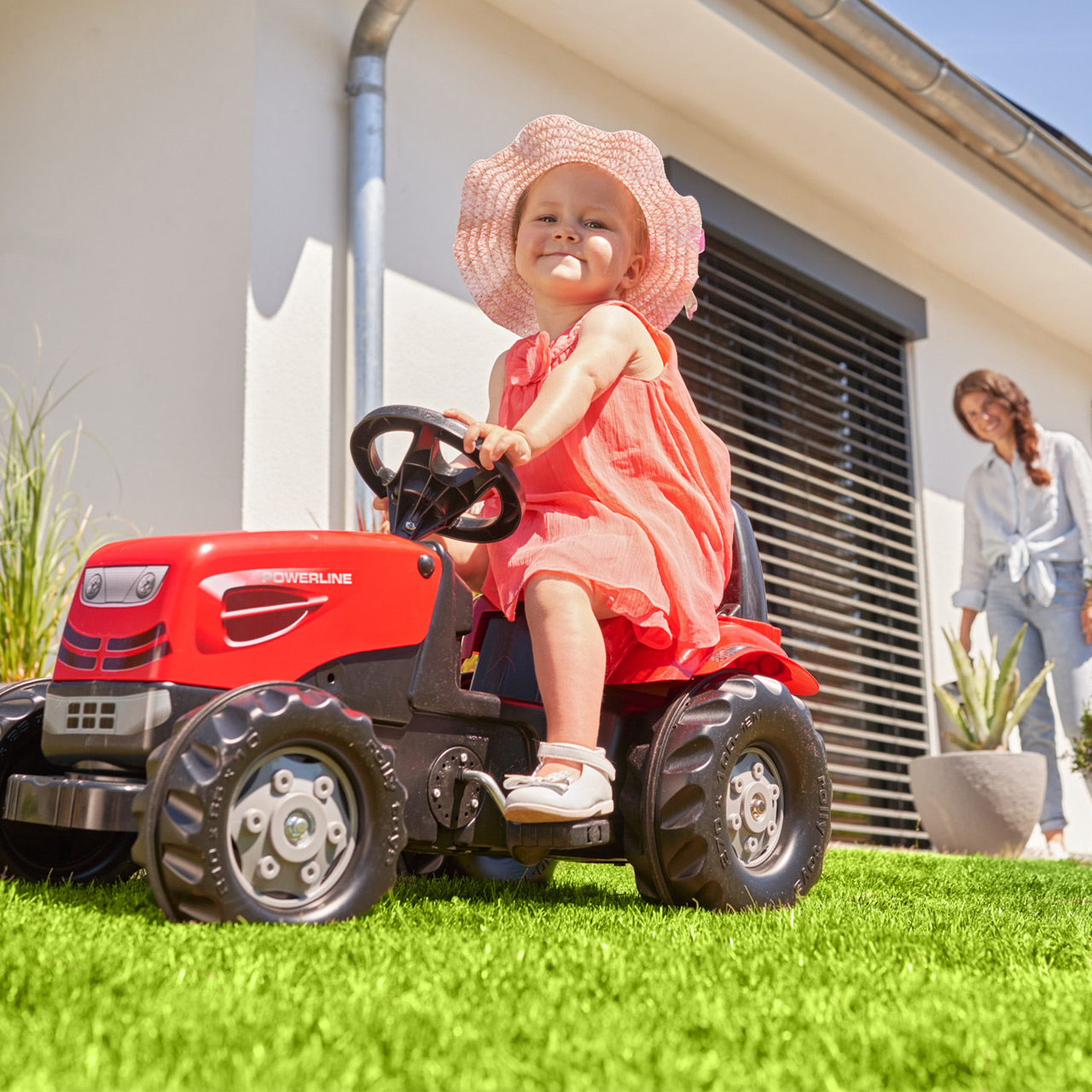 Kvalitní šlapací traktůrek pro děti. Zaoblené rohy a hrany i velmi robustní provedení zaručují vysokou úroveň bezpečnosti. Zvýšená zádová opěrka umožňuje pohodlné sezení nejmenších. Je to větší verze AL-KO MiniTrac a může být vybavena i přívěsem.Technické parametry