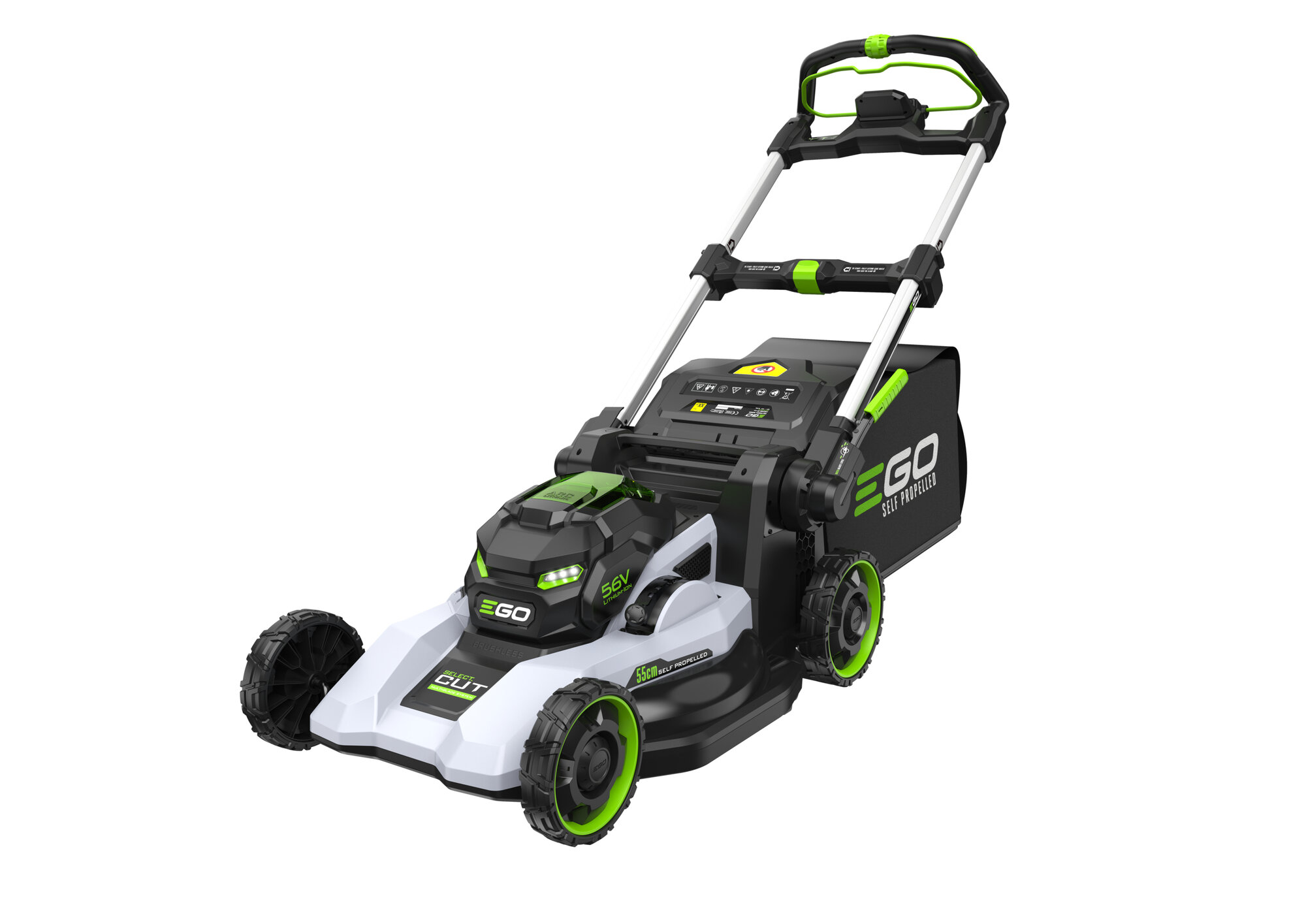 Model EGO LM 2020E-SP se záběrem sečení 50cm, ocelovým podvozkem a plynule proměnlivým pojezdem. Objem sběrného koše 60L, teleskopická a výškově nastavitelná komfortní rukojeť.