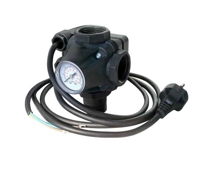 Tlakový spínač PM/5-3W 230V se dodává včetně připojovacích kabelů (1x volné konce pro zapojení do čerpadla, 1x kabel s vidlicí 230V) a je připravený k montáži domácích vodáren s povrchovým čerpadlem.