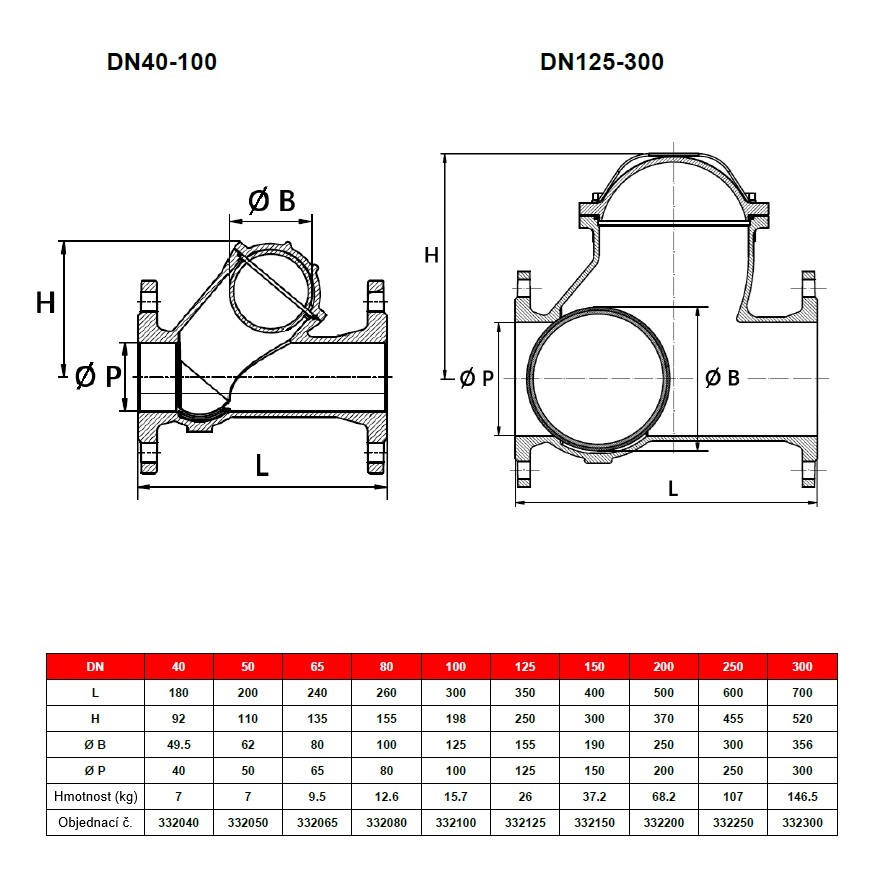 Zpětná klapka s koulí DN40, PN16 přírubová
