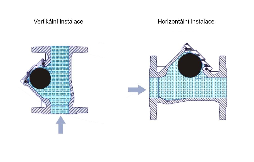 Přírubová zpětná klapka s koulí se používá k zamezení zpětného toku pracovní látky.