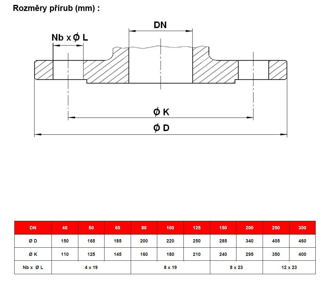 - Připojení : příruby PN10/16 RF