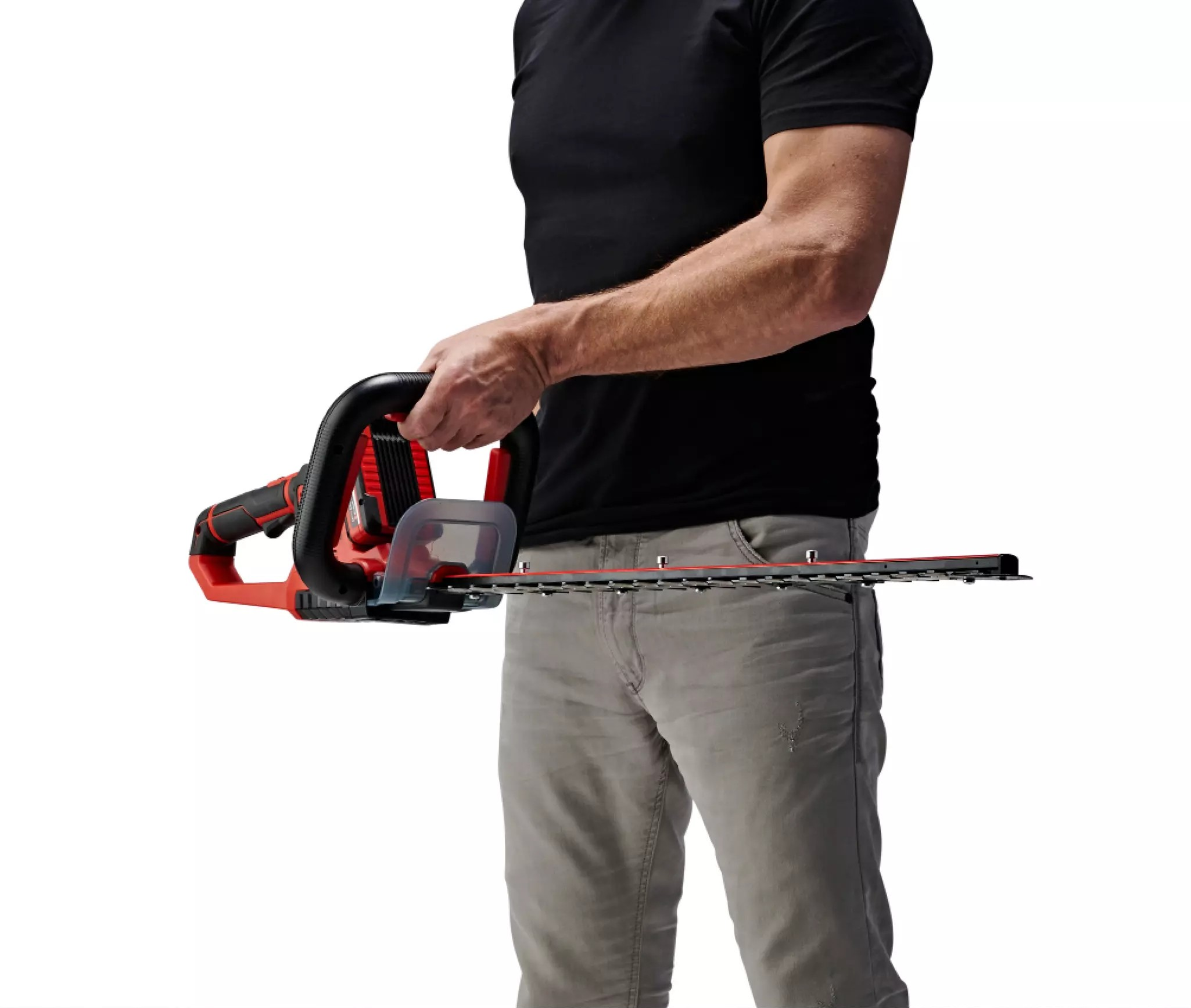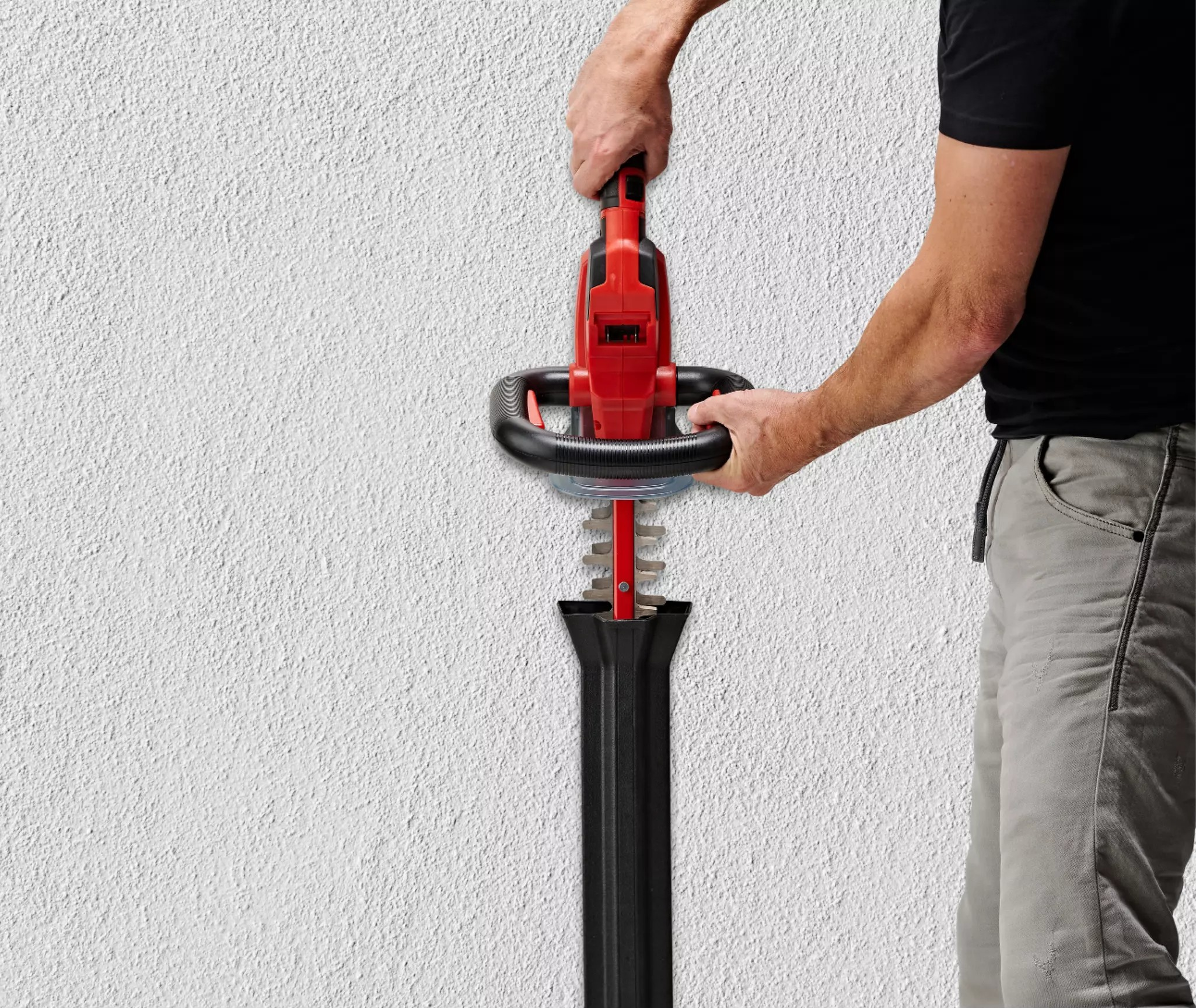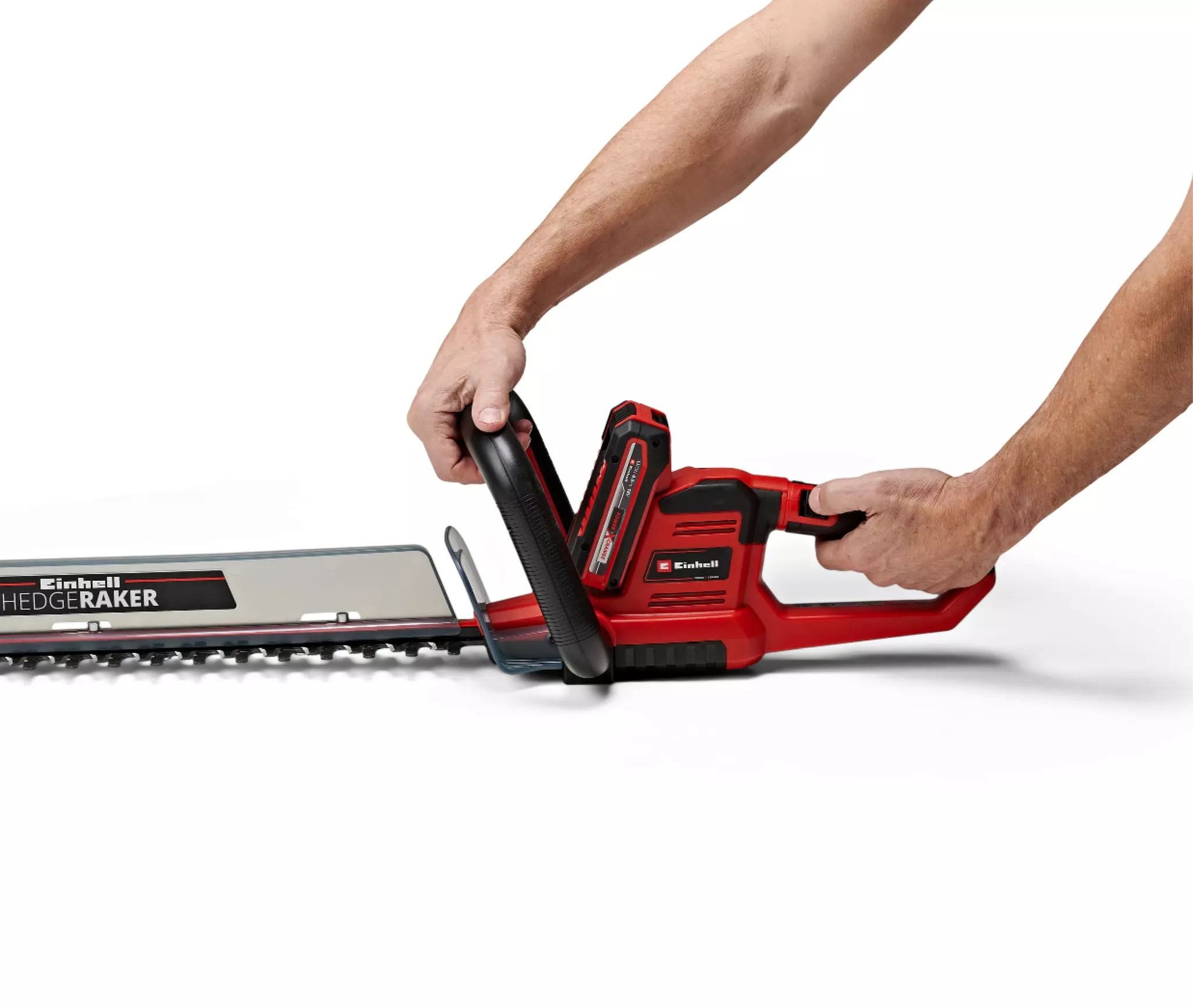 Aku nůžky na živý plot Einhell GE-CH 18/60 Li-Solo jsou vysoce výkonným členem rodiny Power X-Change od firmy Einhell. Inovativní řada Power X-Change boduje silným výkonem a maximální flexibilitou: Lithium-iontové baterie jsou v rámci přístrojů systémové řady Einhell kompatibilní bez jakýchkoli omezení. Každá systémová baterie může být použita s jakýmkoli přístrojem Power X-Change. V tomto ohledu neexistují pro zahradní přístroje a nářadí žádná omezení, což se týká celé produktové rodiny „Power X-Change“. Čepele jsou vyrobeny z laserem řezané a diamantem broušené oceli a jsou navržené s ohledem na maximální přesnost a dlouhou životnost, aku nůžky na živý plot s nimi dosahují řezné délky 60 centimetrů při až 2 700 řezech za minutu. Rukojeť aku nůžek na živý plot je z důvodu lepší a bezpečnější manipulace otočná, ergonomická úzká přední rukojeť je vybavena mikrovypínačem. Robustní kovová převodovka zabezpečuje dlouhou životnost aku nůžek na živý plot. Díky praktickému sběrači řeziva lze při stříhání živého plotu řezivo dokonale odstranit z horní části živého plotu. Hliníkový kryt čepelí zajišťuje čepele a odolné pouzdro poskytuje ochranu při uložení a je kromě toho vhodné pro bezpečnou přepravu. Součástí dodávky je ochrana proti nárazům s držákem pro montáž na stěnu. Dodává se bez baterie a nabíječky, ty lze zakoupit samostatně, například jako praktickou startovací sadu. Provoz nůžek na živý plot Einhell vyžaduje 18V baterii Power X-Change.