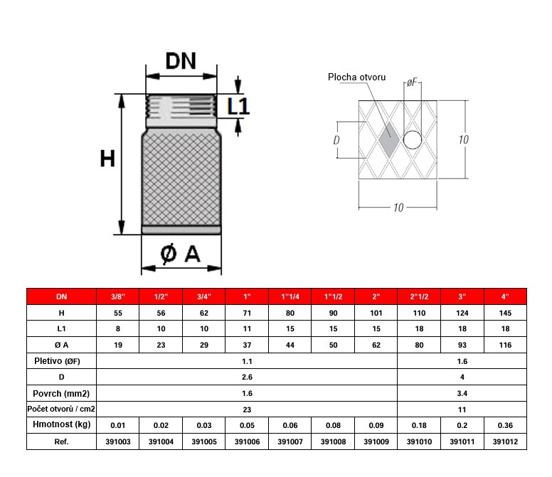 Celonerezové sítko s vnějším válcovaným závitem pro montáž na nerezovou zpětnou klapku. Je vhodný pro vodovodní sítě, rozvody vody, čistou a odpadní vodu, roztok glykolu (max. 30 %) atd.. Namontováním na zpětnou klapku vznikne sací koš.