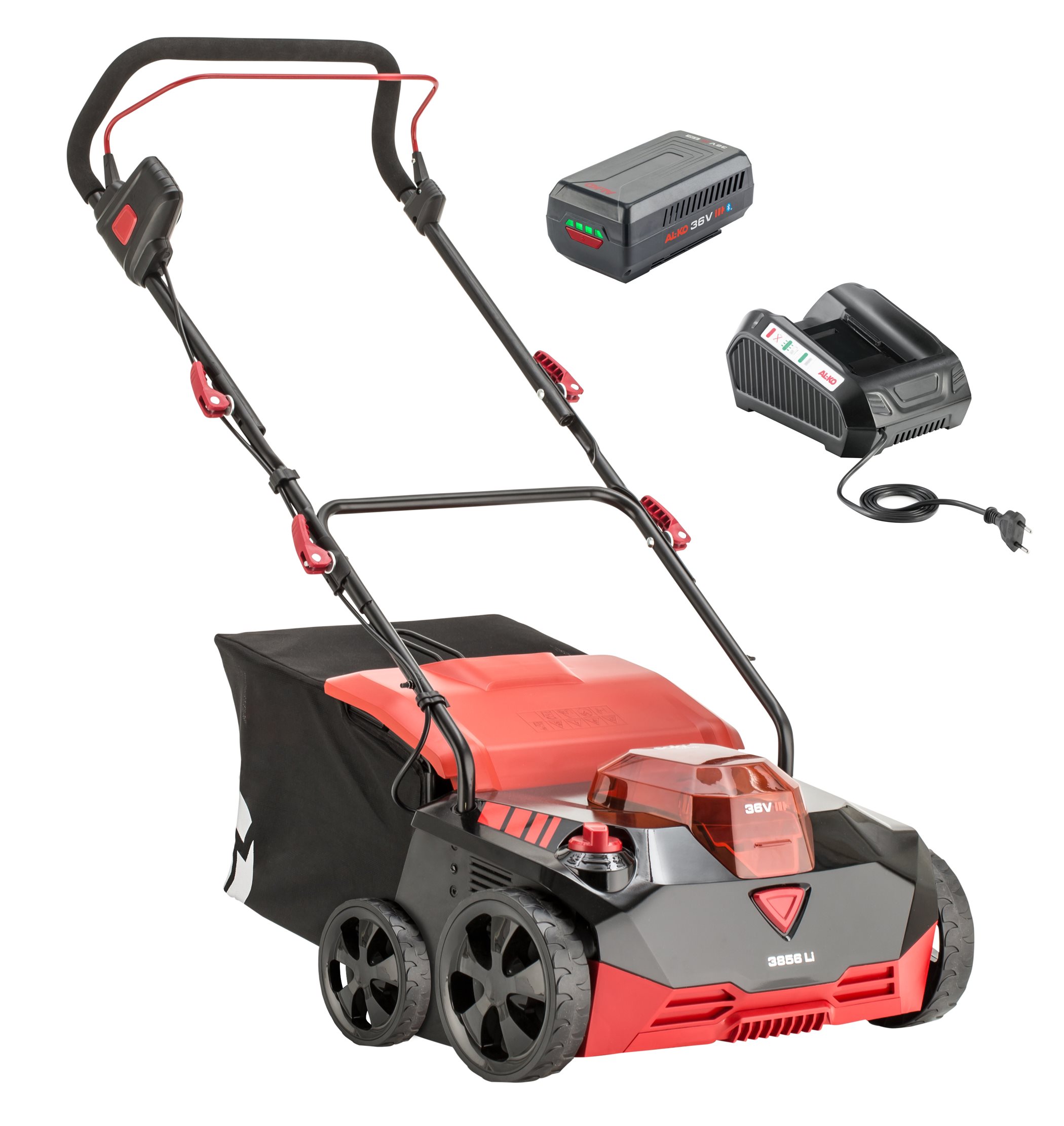 Výkonný vertikutátor s 36V lithium-iontovým akumulátorem (baterie 4 Ah a nabíječka jsou součástí balení)