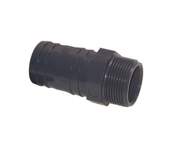 Plastový hadičník s vnějším závitem 1" na hadici s vnitřním průměrem 32 mm.