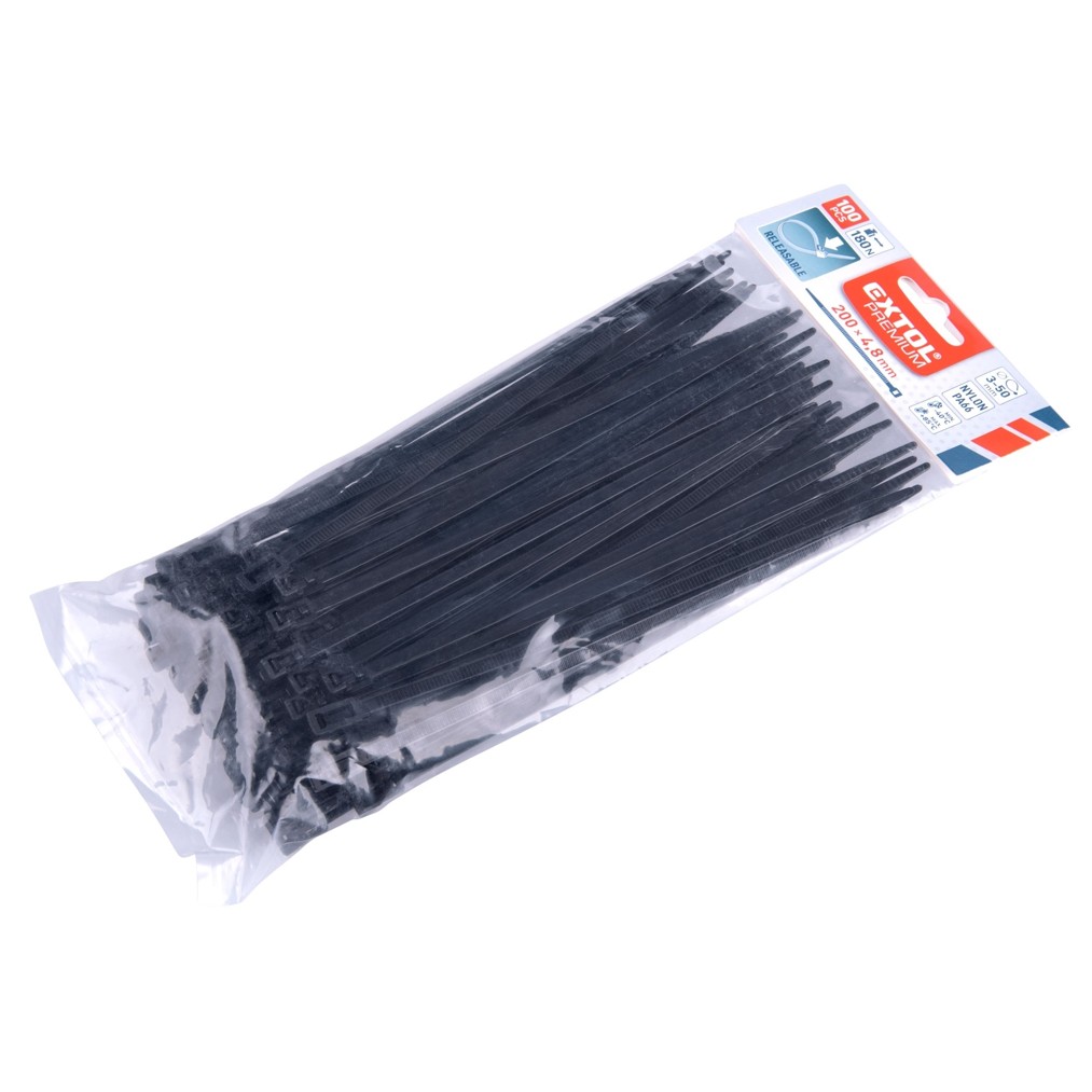 Pásky stahovací černé, rozpojitelné, 200x4,8mm, 100ks, nylon PA66