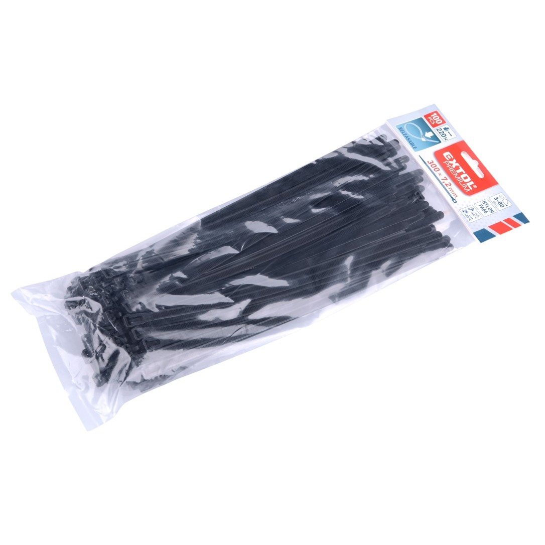 Pásky stahovací černé, rozpojitelné Extol Premium 8856258