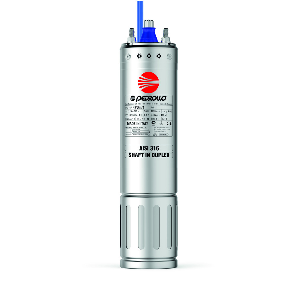 Třífázové ponorné indukční dvoupólové motory Pedrollo PD jsou určené pro pohon vícestupňových 4“ odstředivých čerpadel řady 4SR a 4HR. Jsou plněny čirým netoxickým rostlinným olejem a jsou těsněné mechanickou ucpávkou nejvyšší kvality. Certifikovaný kabel je připojen k motoru voděodolným konektorem zaručujícím jeho jednoduchou výměnu. Připojovací rozměry motorů jsou v souladu s normou NEMA.