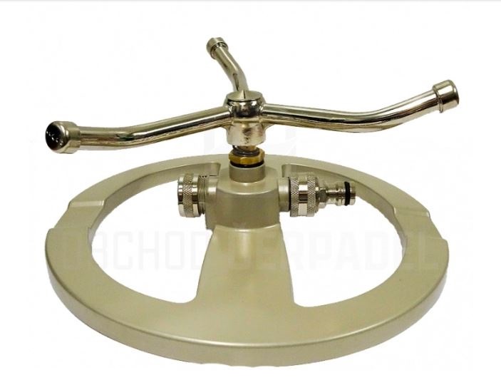 Obzvláště robustní, kruhový, trojramenný zavlažovač vyrobený z kovu v profesionální kvalitě, s možností sériového zapojení několika postřikovačů za sebou. Postřikovač má masivní kovový stojan, který zaručuje jeho stabilitu. Je vybaven kvalitní pochromovanou mosaznou spojkou, která je kompatibilní se všemi standardními rychlospojkovými systémy (jak kovovými, tak plastovými).