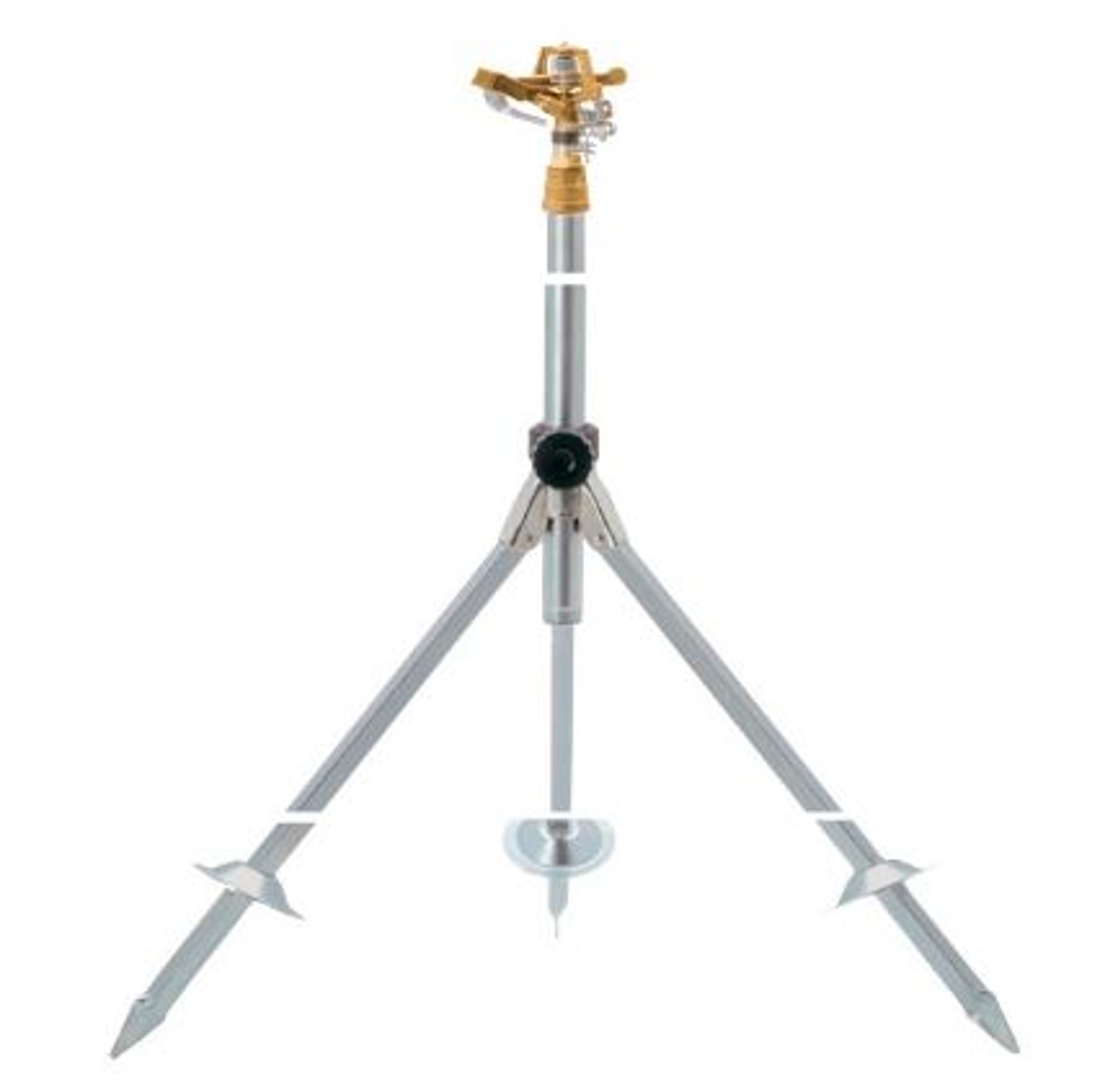 U postřikovače lze pomocí nerezových svorek jednoduše přednastavit zavlažované kruhové výseče. U stojanu z pozinkované oceli lze nastavit výšku od 700 mm do 1 070 mm.