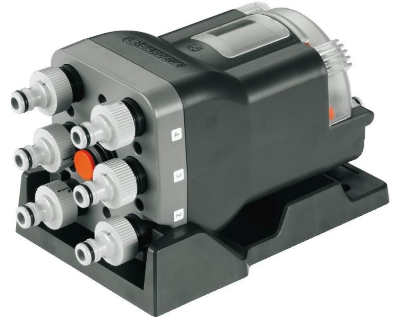 V kombinaci se zavlažovacím počítačem Gardena MasterControl nebo MasterControl solar (č.v. 1864, 1866), Gardena rozdělovač vody automatic zajišťuje automatické zavlažování až šesti různých oblastí zahrady, jednu po druhé. Například můžete zavlažovat trávník zavlažovačem, pak hrnkové rostliny, záhonky, živé ploty a truhlíky pomocí systému kapkové závlahy. Průtok vody automaticky otevře výstupy, jeden po druhém, v závislosti na naprogramování zavlažovacího počítače. Praktické: rozdělovač vody lze pružně přizpůsobit podmínkám ve vaší zahradě. To znamená, že můžete zavlažovat buď pouze dvě oblasti nebo až šest. Nepotřebné výstupy vody se jednoduše deaktivují pomocí páčky. Stejně jako různé rostliny v zahradě potřebují různé množství vody, lze také individuálně nastavit dobu zavlažování v závislosti na naprogramování zavlažovacího počítače. Rozdělovač vody dopraví požadované množství na správné místo. Toto inteligentní řešení je ideální, když není k dispozici dostatečné množství vody pro současné napájení všech koncových přístrojů. Jednoduše připojíte rozdělovač vody na zeď domu, nebo na zem. Protože jsou všechny vývody vody umístěny v jednom směru, zařízení zabírá velmi málo místa. Je vybaven vnějším závitem 26,5 mm a je dodáván s pěti ks šroubení ( č.v. 901) a třemi koncovými zátkami.