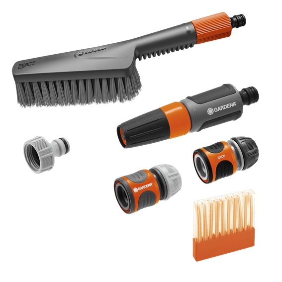 Sada obsahuje: 1 x ruční kartáč měkký S, 1 x šroubení, 1 x rychlospojka, 1 x stopspojka, 1 x čisticí postřikovač, 1 x mýdlové tyčinky.