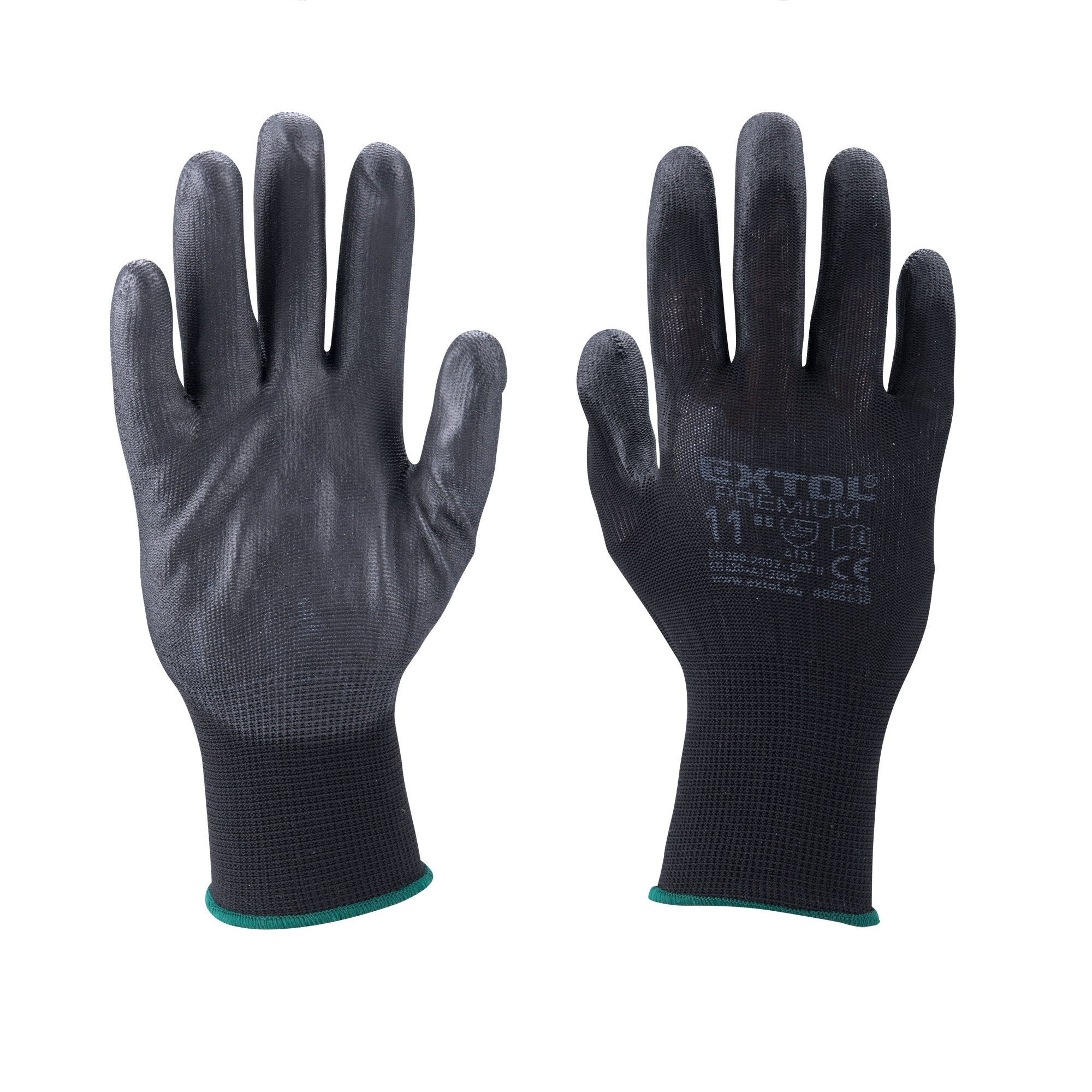 Rukavice z polyesteru polomáčené v PU, černé, velikost 11".