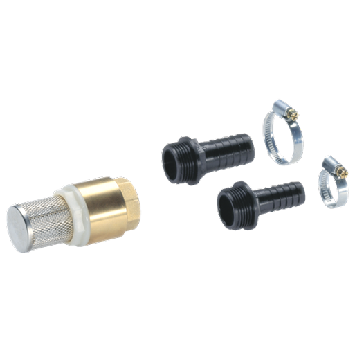 Obzvláště robustní výrobek z kovu a plastu. Jednoduše připojte sací filtr k sací hadici. Zajišťuje ochranu proti nečistotám a tudíž i proti poškození čerpadla. Zpětná klapka zkracuje čas opětovného nasávání a umožňuje tak efektivnější čerpání. Spolu s hadicovou svorkou umožňuje snadné zajištění.
