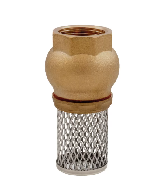 Mosazný sací koš s ventilovým uzávěrem.