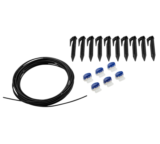 GARDENA sada pro opravy je ideální pro upevnění ohraničujícího vodiče a pro provádění drobných úprav na žací ploše. Skládá se z 5 metrů ohraničujícího vodiče, 10 háků pro ukotvení kabelu do země a 6 konektorů pro pohodlné propojení existujícího vodiče s novým.