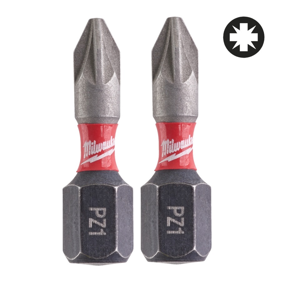 2ks šroubovacích bitů Milwaukee o délce 25 mm, typ PZ1.Vlastnosti bitů