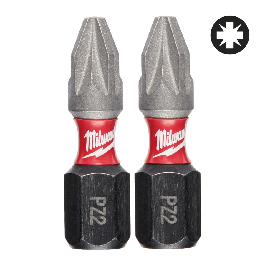 2ks šroubovacích bitů Milwaukee o délce 25 mm, typ PZ2.Vlastnosti bitů