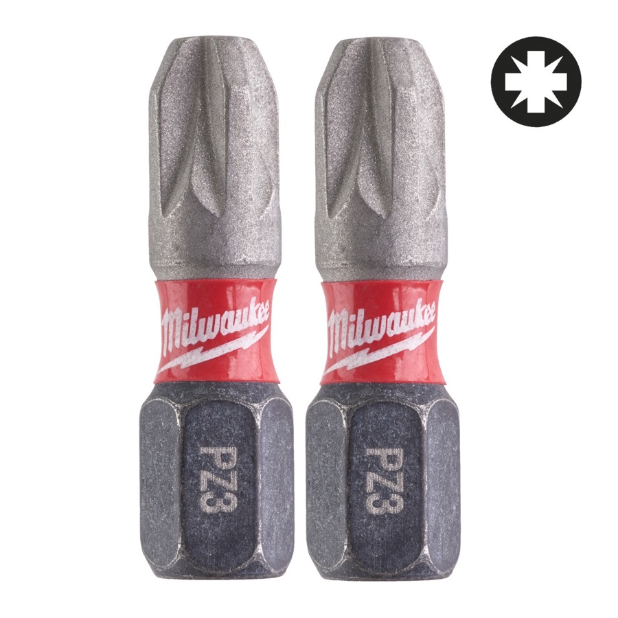 2ks šroubovacích bitů Milwaukee o délce 25 mm, typ PZ3.Vlastnosti bitů