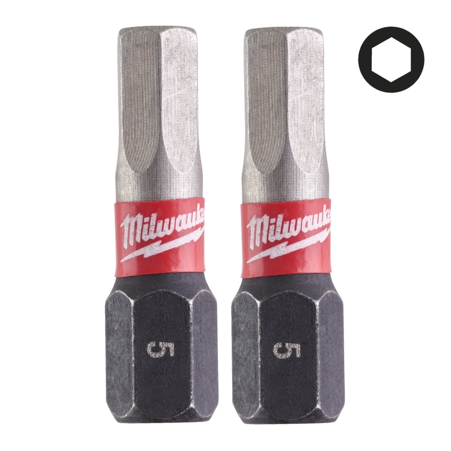 2ks šroubovacích bitů Milwaukee o délce 25 mm, typ Hex 5.Vlastnosti bitu
