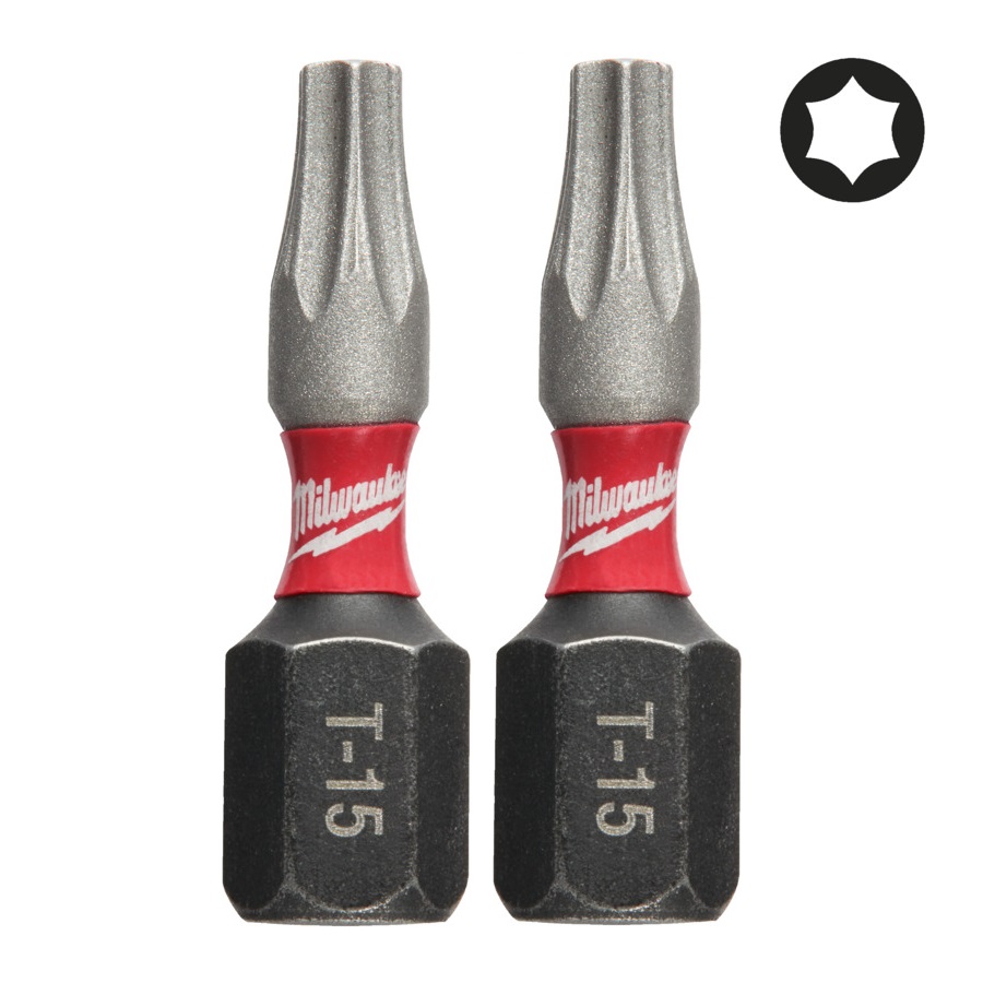 2ks šroubovacích bitů Milwaukee o délce 25 mm, typ TX15.Vlastnosti bitů