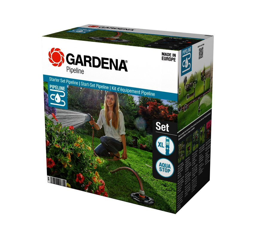 Startovací sada Pipeline značky Gardena obsahuje všechny důležité komponenty pro úspěšnou instalaci Gardena Pipeline systému. Voda je přiváděna z vodovodního kohoutku, přes připojovací krabici do podzemního potrubí. Dvě přiložené vodní zásuvky slouží jako připojovací výstupy pro hadici nebo samostatná připojovací zařízení Gardena Pipeline, jako je například výkyvný zavlažovač nebo zahradní vodovodní kohoutek. Vodní zásuvka je vybavena automatickým uzavíracím ventilem. Jak připojovací krabice, tak obě vodní zásuvky zahradního systému Pipeline jsou vybaveny filtrem na nečistoty pro ochranu před cizími částicemi.