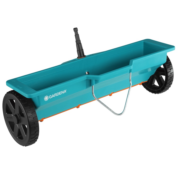 Gardena Combisystem sypací vozík pro rozptyl travního hnojiva. Integrovaná stěrací lišta zajišťuje stejnoměrné sypání. Se sypací tabulkou pro běžná hnojiva s normalizovanou zrnitostí. Doporučená délka násady 130 cm/150 cm.