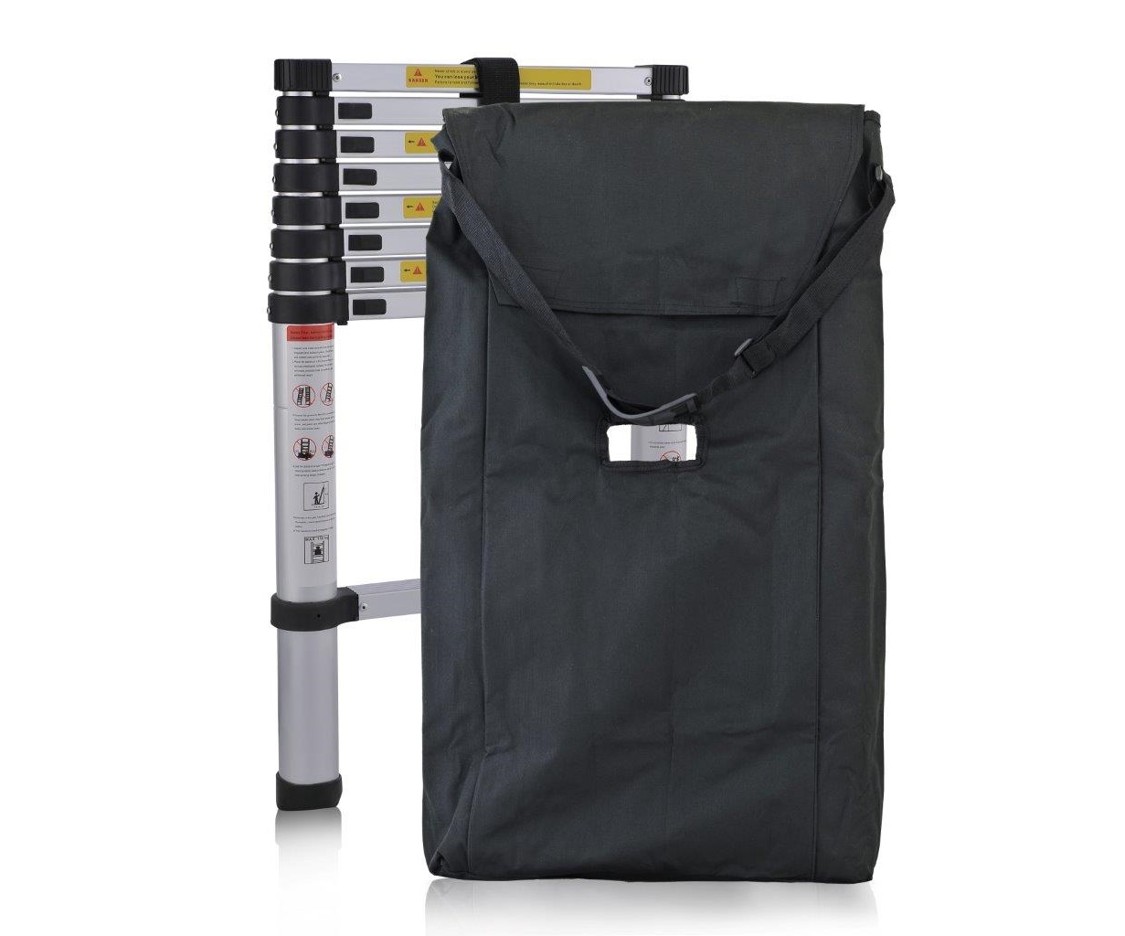 Její pohodlný trak je opatřen nárameníkem, díky kterému se váha žebříku rozloží na větší plochu a manipulace s ním tak bude mnohem jednodušší. Uprostřed tašky na teleskopický žebřík je otvor pro rychlé a pohodlné uchopení žebříku.