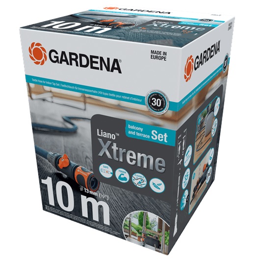 Gardena textilní hadice Liano™ Xtreme 10 m s přípojkou pro vnitřní vodovodní kohoutky je vaší kompletní sadou Liano™ pro účinné a bezpečné zavlažování na balkoně nebo terase.