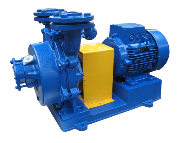 Rotační vodokružná vývěva (včetně kompletní spojky a krytu spojky) na společné základové desce s motorem 5,5 kW.