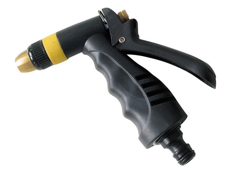 mosaz. tryska s možností nastavení stříkání od jemného mlžení až po plný proud, ergonomická rukojeť s aretací