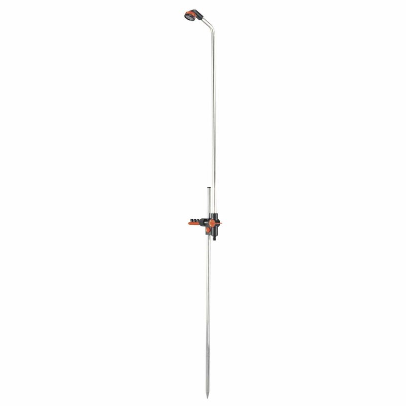 Sprchování venku může být opravdu zábava! Bodec zahradní sprchy duo od společnosti GARDENA lze snadno zapíchnout do trávníku nebo do slunečníkového stojanu na terase. Má dva tvary stříkání: buď jemnější a širší měkké stříkání, nebo jemně nastavitelné mžení pro extra osvěžení. Výšku lze libovolně nastavit jednoduchým tlačítkem. Díky tomu lze trysku ideálně nastavit pro každou velikost postavy. Regulační a uzavírací ventil reguluje množství a propustí přesně požadovaný průtok vody.