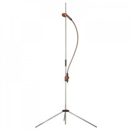 Sprchování pomocí zahradní sprchy trio se stativem od společnosti GARDENA je stejně pohodlné jako ve vaší koupelně. Díky trojnožce lze sprchu snadno nainstalovat kdekoli. Flexibilní a snímatelná sprchová hlava připojená k 1,3m hadici přináší větší svobodu při sprchování na zahradě. Má dva tvary stříkání: vějířové měkké stříkání pro sprchování nebo mžení pro jemné osvěžení. Výšku lze libovolně nastavit jednoduchým tlačítkem. Díky tomu lze trysku ideálně nastavit pro každou velikost postavy. Regulační a uzavírací ventil zajišťuje regulaci a nastavení požadovaného průtoku vody.